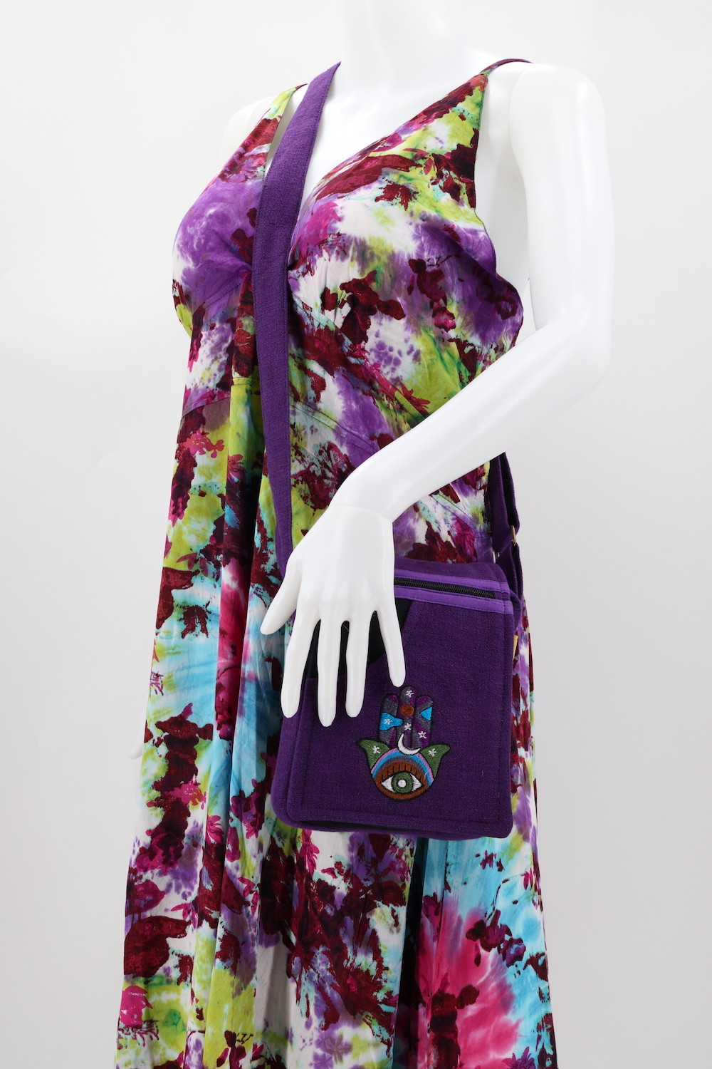 The beautiful Hand-Woven Cotton Travel bag is hand made in Nepal with pure 100% organic Himalaya Cotton. This modern Mushroom Embroidery Cotton passport bag is supremely versatile and fashionable. This bag features are it has two compartments with zippers and it has adjustable strap with outside two pockets in the front and in the main pocket above with a zipper. It is a fair trade made product.