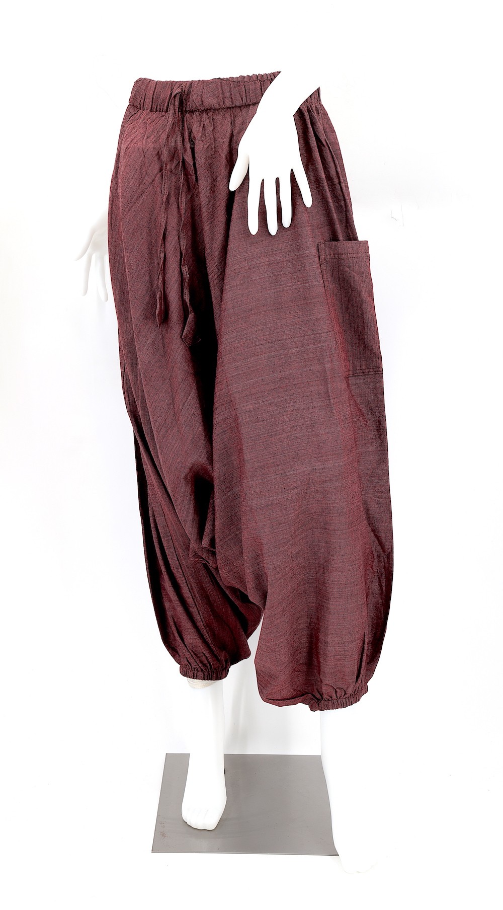 Handmade in the Himalayas, these pants are crafted from authentic 100% pure handwoven cotton, ensuring a genuine and sustainable product. We are committed to fair trade practices throughout the manufacturing and sale of this item, which is imported from Nepal.