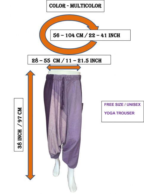 Harem pants, Yoga Trouser, the perfect festival trousers, super baggy in a hippie style and comfortable for yoga, dance and lounging around. These are Unisex Pants so can be wearable for Women, Girls, Boys. FREE SIZE FITS TO ALL (up to 56 - 104 CM Waist) and it has 97 cm length.