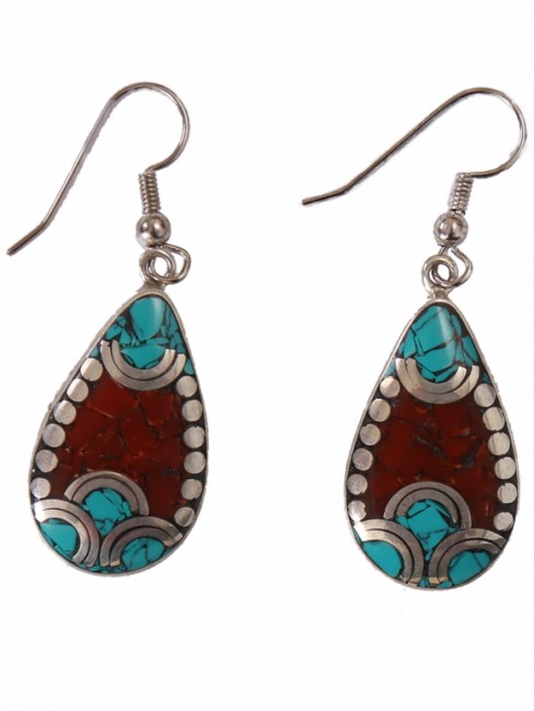 The authentic and beautiful handmade German silver earring mixed with turquoise polished stone and garnet polished stone. These earrings are both whimsical and fashionable also these earrings are authentic reflection of the ancient cultures of Nepal. From simple, classic styles to unique cocktail earrings and these styles of earring fit for any occasion. These earrings are crafted by using only simple hand tools and perfected silver pieces inset with quality gemstones. These earring unique and exotic design makes you the highlight of any crowd.