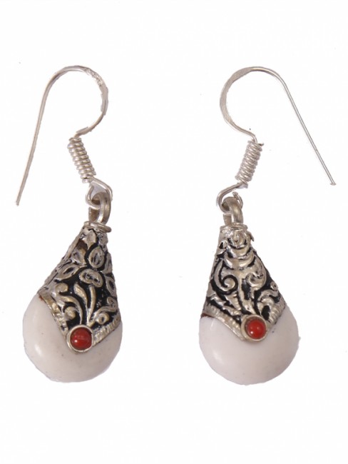 The authentic and beautiful handmade German silver earring mixed with turquoise polished stone and garnet polished stone. These earrings are both whimsical and fashionable also these earrings are authentic reflection of the ancient cultures of Nepal. From simple, classic styles to unique cocktail earrings and these styles of earring fit for any occasion. These earrings are crafted by using only simple hand tools and perfected silver pieces inset with quality gemstones. These earring unique and exotic design makes you the highlight of any crowd.