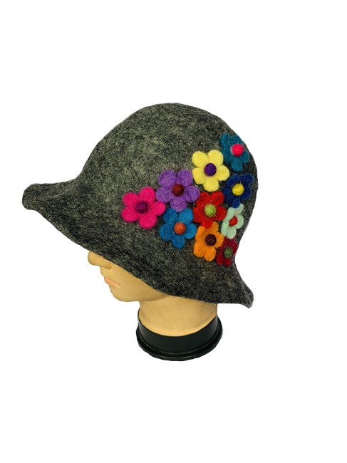 The beautiful Women's hat is unique in many ways. First, it is hand felted by the local Nepalese women with dedication and lots of love at our associate felt production house in Kathmandu valley. Secondly, it has that sweet and beautiful flower which gives it an extra edgy looks.