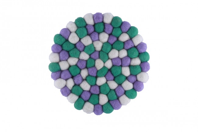 This multi colored felt ball hot pad (Trivet) is beautiful and functional. Brighten up your kitchen with this sturdy piece of handmade art! Each ball is felted by hand and strung tightly to create this piece. Although the hot pad is useful to protect your wood tables from getting burned by hot pans, some prefer this lovely piece as a wall decoration. The felt trivet measuring 20 cm in diameter is made of felt balls hand sewn together for durability. 100% felt wool balls. It’s Washing machine friendly. This is fair trade product and made.