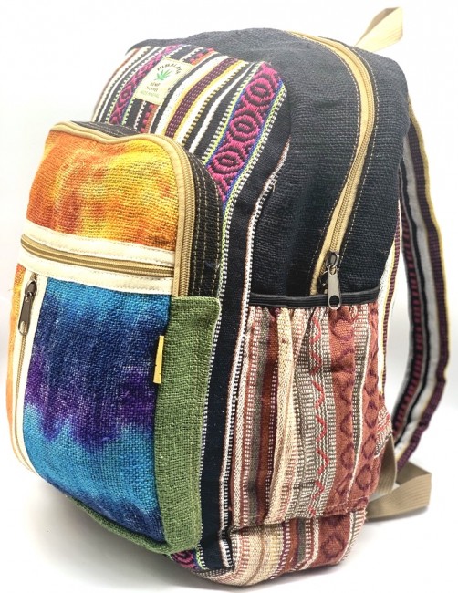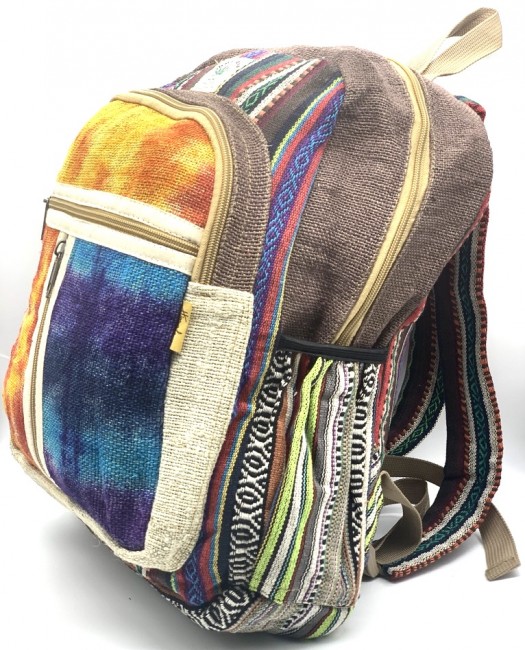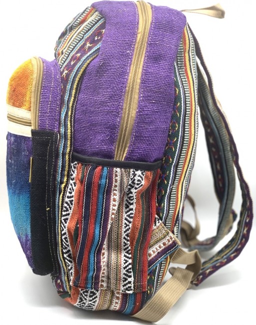 At Himalaya Handmade we are known for creating the modern Large Hemp backpacks that are now available in profusion of design and colors. Our Large backpack with multicolor Aztec pattern is made from eco-friendly natural hand-woven hemp and cotton fabric and it is beautifully handcrafted in Nepal, they are high quality and this backpack has everything you need. You will not find higher quality anywhere else. All of our bags are sourced from the mountainous regions of Nepal and are all 100% Handmade. This backpack features are it has a unique multi colored pocket. Handcrafted this Backpack Includes, laptop compartment – fits up to 15 inch, 4 separate zippered compartments with 2 pockets, 2 water bottle holders, extremely strong construction, strong original two metal zippers on main compartment, soft padded straps and made from 100% Hemp, the entire bag is extremely strong but also breathable. Color of these bag will not be exact because arrangement of the pattern and these bags are handmade so in color can be slightly different. Pictures color are just example. Every bag is handmade and therefore unique.