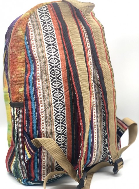 • At Himalaya Handmade we are known for creating the modern Large Hemp backpacks that are now available in profusion of design and colors. Our Large backpack with multicolor Aztec pattern is made from eco-friendly natural hand-woven hemp and cotton fabric and it is beautifully handcrafted in Nepal, they are high quality and this backpack has everything you need. You will not find higher quality anywhere else. All of our bags are sourced from the mountainous regions of Nepal and are all 100% Handmade. This backpack features are it has a unique multi colored pocket. Handcrafted this Backpack Includes, laptop compartment – fits up to 15 inch, 4 separate zippered compartments with 2 pockets, 2 water bottle holders, extremely strong construction, strong original two metal zippers on main compartment, soft padded straps and made from 100% Hemp, the entire bag is extremely strong but also breathable. Color of these bag will not be exact because arrangement of the pattern and these bags are handmade so in color can be slightly different. Pictures color are just example. Every bag is handmade and therefore unique.