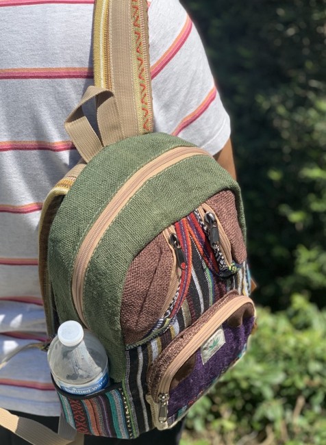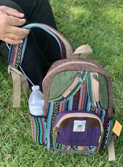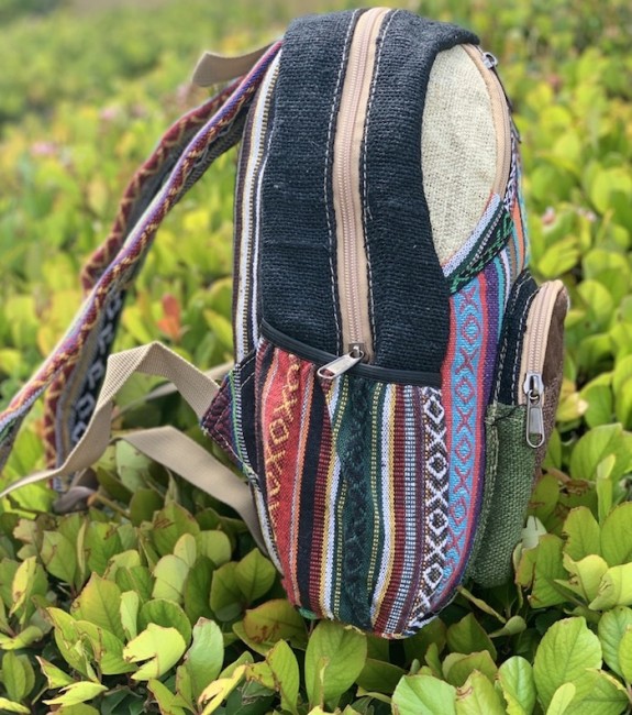 • At Himalaya Handmade we are known for creating the modern Mini hemp backpacks that are now available in profusion of design and colors. Our Mini backpack with multicolor Aztec pattern is made from eco-friendly natural hand-woven hemp and cotton fabric and it is beautifully handcrafted in Nepal, they are high quality and this backpack has everything you need. You will not find higher quality anywhere else. All of our bags are sourced from the mountainous regions of Nepal and are all 100% Handmade. This backpack features are it has a unique multi colored pocket. Handcrafted this Backpack Includes, laptop compartment – fits up to 13 inch, 4 separate zippered compartments with 2 pockets, 2 water bottle holders, extremely strong construction, strong original two metal zippers on main compartment, soft padded straps and made from 100% Hemp, the entire bag is extremely strong but also breathable. Color of these bag will not be exact because arrangement of the pattern and these bags are handmade so in color can be slightly different. Pictures color are just example. Every bag is handmade and therefore unique.