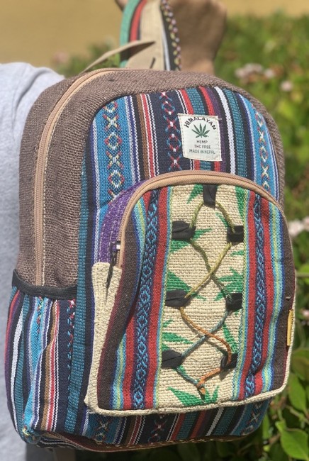 • At Himalaya Handmade we are known for creating the modern Mini hemp backpacks that are now available in profusion of design and colors. Our Mini backpack with multicolor Aztec pattern is made from eco-friendly natural hand-woven hemp and cotton fabric and it is beautifully handcrafted in Nepal, they are high quality and this backpack has everything you need. You will not find higher quality anywhere else. All of our bags are sourced from the mountainous regions of Nepal and are all 100% Handmade. This backpack features are it has a unique multi colored pocket. Handcrafted this Backpack Includes, laptop compartment – fits up to 13 inch, 4 separate zippered compartments with 2 pockets, 2 water bottle holders, extremely strong construction, strong original two metal zippers on main compartment, soft padded straps and made from 100% Hemp, the entire bag is extremely strong but also breathable. Color of these bag will not be exact because arrangement of the pattern and these bags are handmade so in color can be slightly different. Pictures color are just example. Every bag is handmade and therefore unique.