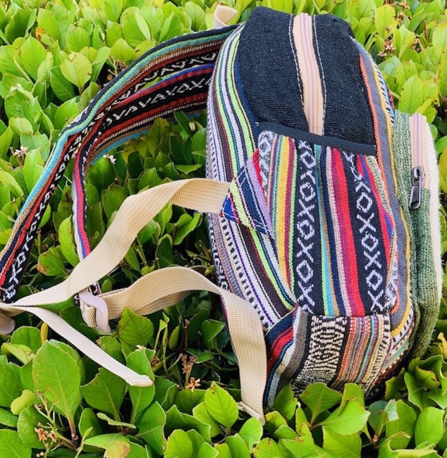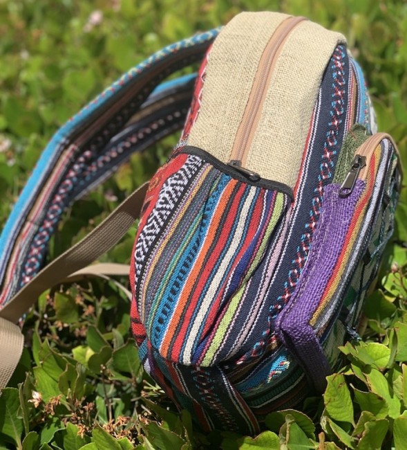• At Himalaya Handmade we are known for creating the modern Mini hemp backpacks that are now available in profusion of design and colors. Our Mini backpack with multicolor Aztec pattern is made from eco-friendly natural hand-woven hemp and cotton fabric and it is beautifully handcrafted in Nepal, they are high quality and this backpack has everything you need. You will not find higher quality anywhere else. All of our bags are sourced from the mountainous regions of Nepal and are all 100% Handmade. This backpack features are it has a unique multi colored pocket. Handcrafted this Backpack Includes, laptop compartment – fits up to 13 inch, 4 separate zippered compartments with 2 pockets, 2 water bottle holders, extremely strong construction, strong original two metal zippers on main compartment, soft padded straps and made from 100% Hemp, the entire bag is extremely strong but also breathable. Color of these bag will not be exact because arrangement of the pattern and these bags are handmade so in color can be slightly different. Pictures color are just example. Every bag is handmade and therefore unique.