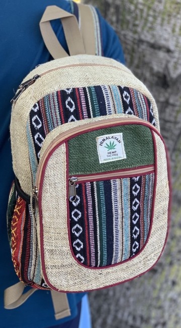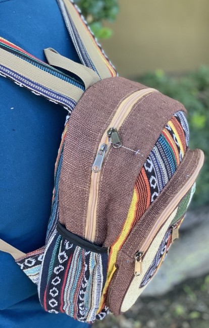 - At Himalaya Handmade we are known for creating the modern Mini hemp backpacks that are now available in profusion of design and colors. Our Mini backpack with multicolor Aztec pattern is made from eco-friendly natural hand-woven hemp and cotton fabric and it is beautifully handcrafted in Nepal, they are high quality and this backpack has everything you need. You will not find higher quality anywhere else. All of our bags are sourced from the mountainous regions of Nepal and are all 100% Handmade. This backpack features are it has a unique multi colored pocket. Handcrafted this Backpack Includes, laptop compartment – fits up to 13 inch, 4 separate zippered compartments with 2 pockets, 2 water bottle holders, extremely strong construction, strong original two metal zippers on main compartment, soft padded straps and made from 100% Hemp, the entire bag is extremely strong but also breathable. Color of these bag will not be exact because arrangement of the pattern and these bags are handmade so in color can be slightly different. Pictures color are just example. Every bag is handmade and therefore unique.