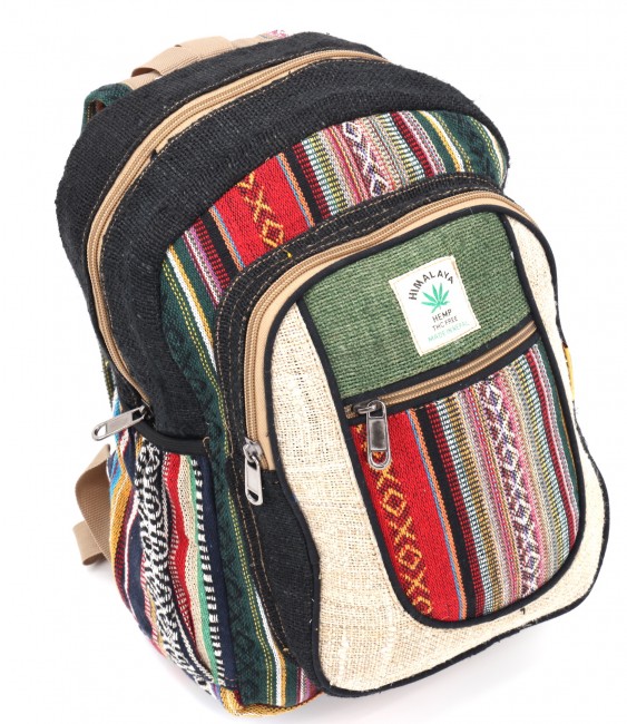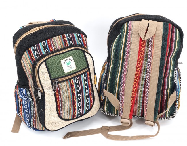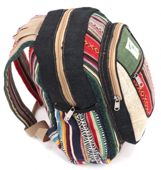 - At Himalaya Handmade we are known for creating the modern Mini hemp backpacks that are now available in profusion of design and colors. Our Mini backpack with multicolor Aztec pattern is made from eco-friendly natural hand-woven hemp and cotton fabric and it is beautifully handcrafted in Nepal, they are high quality and this backpack has everything you need. You will not find higher quality anywhere else. All of our bags are sourced from the mountainous regions of Nepal and are all 100% Handmade. This backpack features are it has a unique multi colored pocket. Handcrafted this Backpack Includes, laptop compartment – fits up to 13 inch, 4 separate zippered compartments with 2 pockets, 2 water bottle holders, extremely strong construction, strong original two metal zippers on main compartment, soft padded straps and made from 100% Hemp, the entire bag is extremely strong but also breathable. Color of these bag will not be exact because arrangement of the pattern and these bags are handmade so in color can be slightly different. Pictures color are just example. Every bag is handmade and therefore unique.