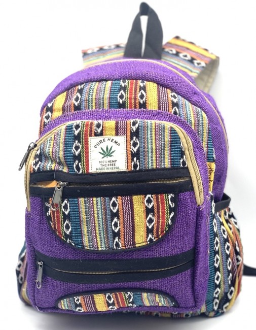 Double Stitched with the highest quality Himalaya Hemp and double zipper with fully adjustable shoulder straps one size fits all. Dimensions: 12" x 10" x 4" inch / 30 x 25 x 10 cm.