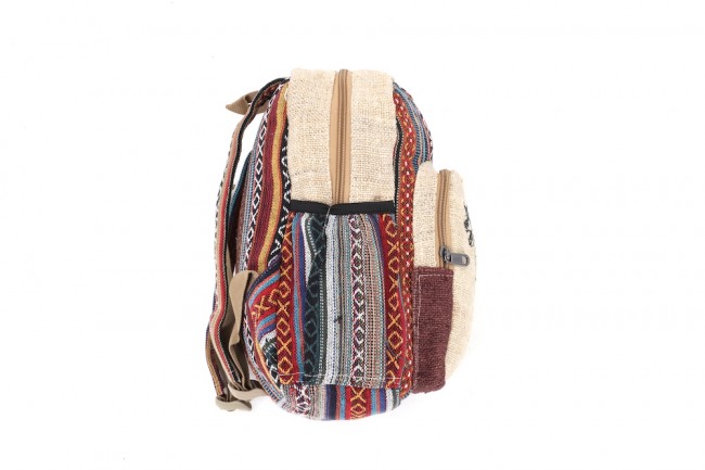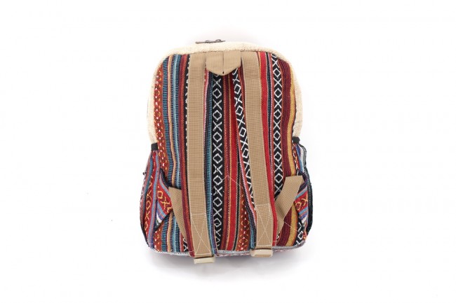 At Himalaya Handmade we are known for creating the modern Mini hemp backpacks that are now available in profusion of design and colors. Our Mini backpack with multicolor Aztec pattern is made from eco-friendly natural hand-woven hemp and cotton fabric and it is beautifully handcrafted in Nepal, they are high quality and this backpack has everything you need. You will not find higher quality anywhere else. All of our bags are sourced from the mountainous regions of Nepal and are all 100% Handmade. This backpack features are it has a unique multi colored pocket. Handcrafted this Backpack Includes, laptop compartment – fits up to 13 inch, 4 separate zippered compartments with 2 pockets, 2 water bottle holders, extremely strong construction, strong original two metal zippers on main compartment, soft padded straps and made from 100% Hemp, the entire bag is extremely strong but also breathable. Color of these bag will not be exact because arrangement of the pattern and these bags are handmade so in color can be slightly different. Pictures color are just example. Every bag is handmade and therefore unique.