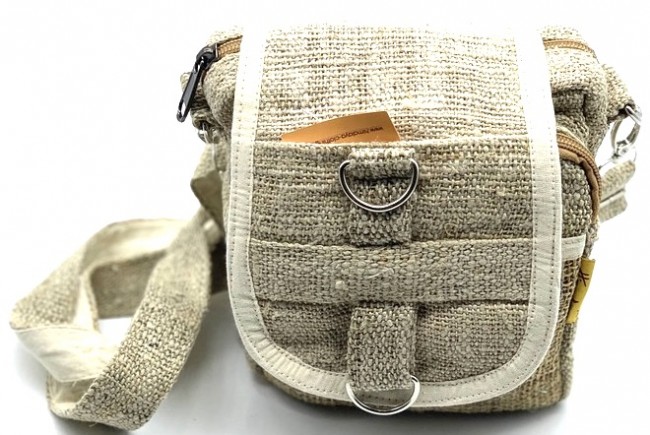 The beautiful hemp Travel bag is hand made in Nepal with pure 100% organic core hemp. This modern hemp passport bag is supremely versatile and fashionable. This bag features are it has two compartments with zippers and it has adjustable strap with outside two pockets in the front and in the main pocket above with a zipper. It is fair trade product.