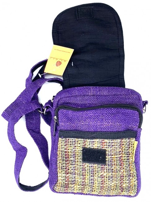 The beautiful hemp Travel bag is hand made in Nepal with pure 100% organic core hemp. This modern hemp passport bag is supremely versatile and fashionable. This bag features are it has two compartments with zippers and it has adjustable strap with outside two pockets in the front and in the main pocket above with a zipper. It is fair trade product.