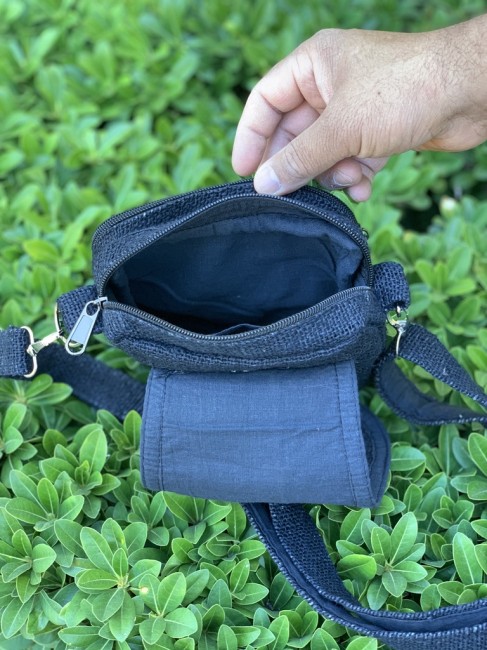 The beautiful hemp Travel bag is hand made in Nepal with pure 100% organic core hemp. This modern hemp passport bag is supremely versatile and fashionable. This bag features are it has two compartments with zippers and it has adjustable strap with outside two pockets in the front and in the main pocket above with a zipper. It is fair trade product.