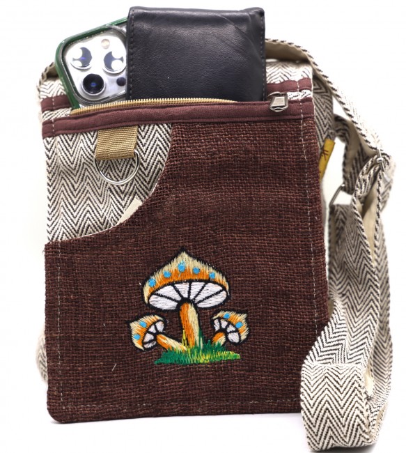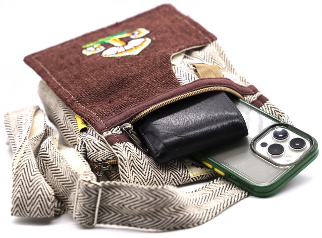 The beautiful hemp Travel bag is hand made in Nepal with pure 100% organic Himalaya hemp. This modern hemp passport bag is supremely versatile and fashionable. This bag features are it has two compartments with zippers and it has adjustable strap with outside two pockets in the front and in the main pocket above with a zipper. It is a fair trade made product.