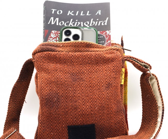 The beautiful hemp Travel bag is hand made in Nepal with pure 100% organic Himalaya hemp. This modern hemp passport bag is supremely versatile and fashionable. This bag features are it has two compartments with zippers and it has adjustable strap with outside two pockets in the front and in the main pocket above with a zipper. It is a fair trade made product.