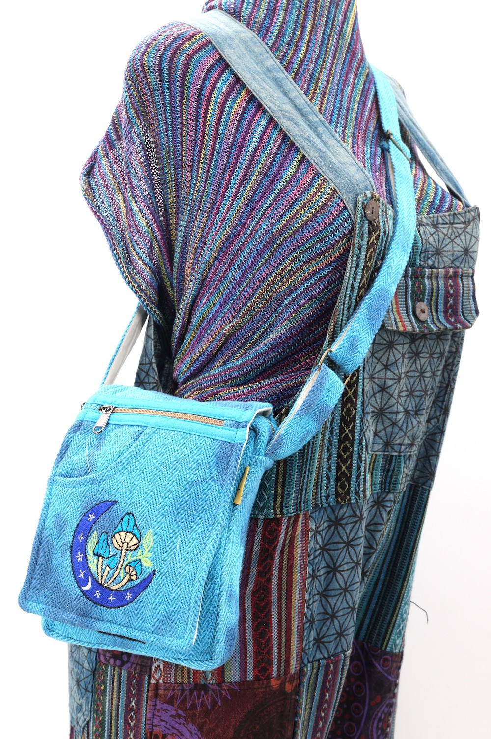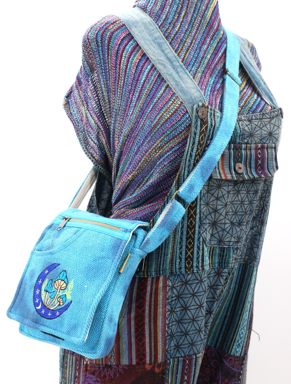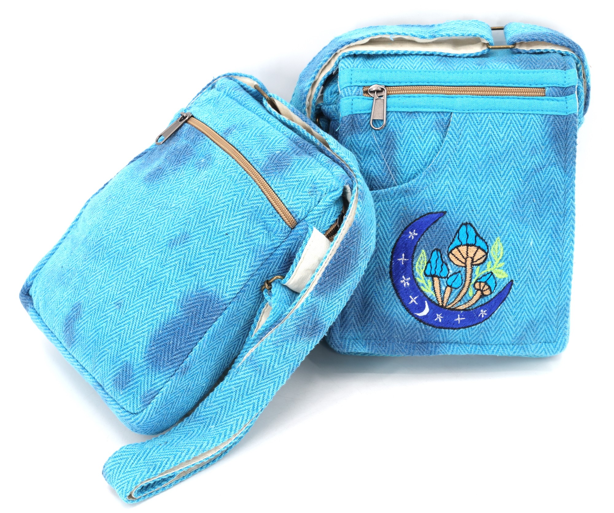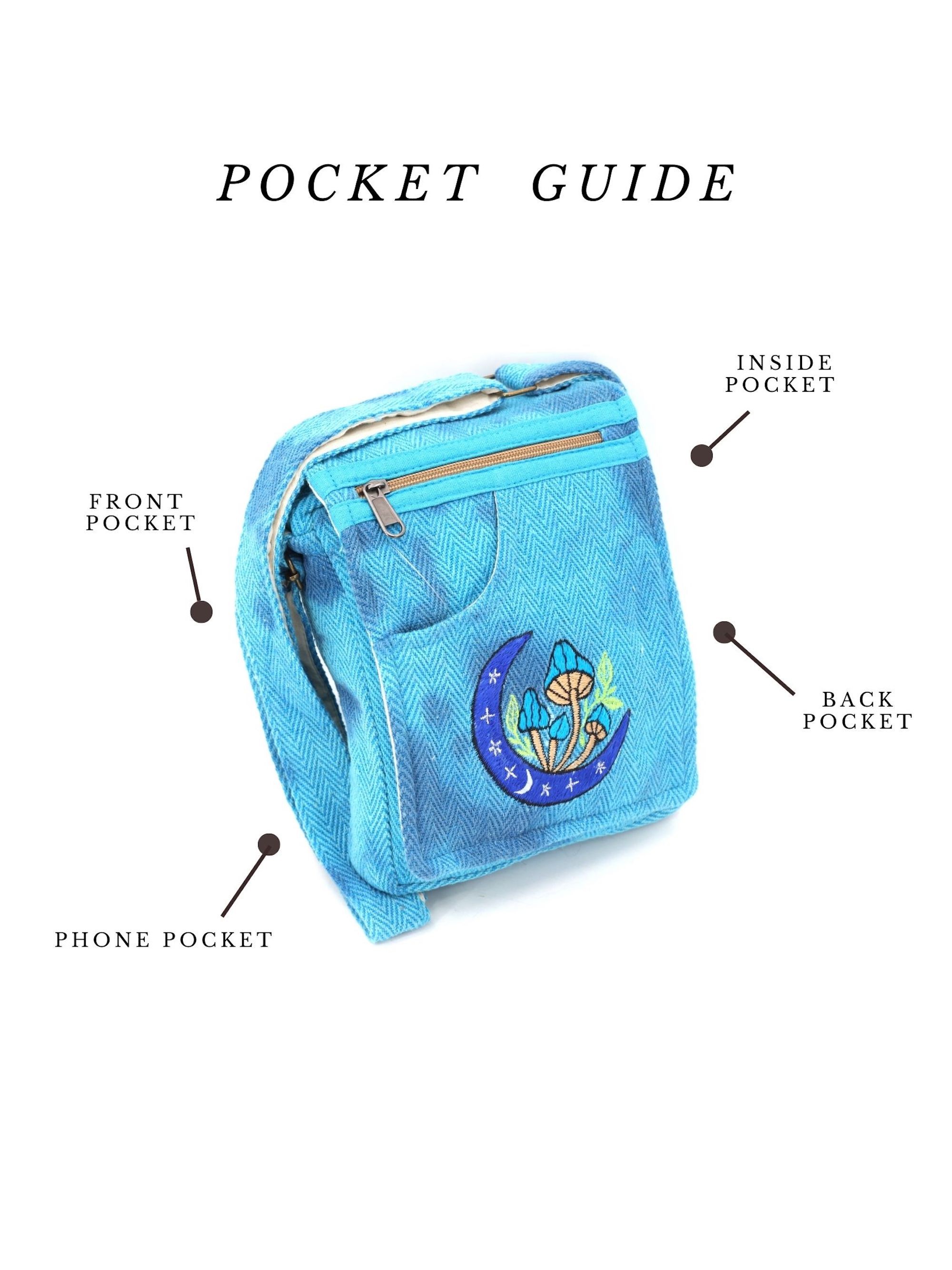 A versatile and beautiful Moon Mushroom hand embroidery 100% Natural THC Free Himalaya Hemp Fabric stitched by talented artisans in Himalaya Range of Nepal. Support underprivileged Nepalese communities with your purchase. Hand wash or Machine wash separately in cold water.