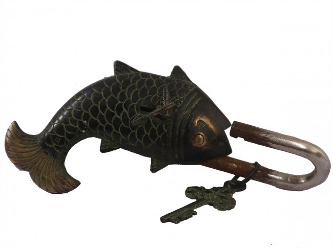 The Beautiful antique color fish door lock with strong structure handmade in Nepal. This Metal door lock is hand crafted by experienced and skilled artists of Nepal, who have been under in profession since generations. Our goods are quality controlled and well packed to ensure customer satisfaction.
