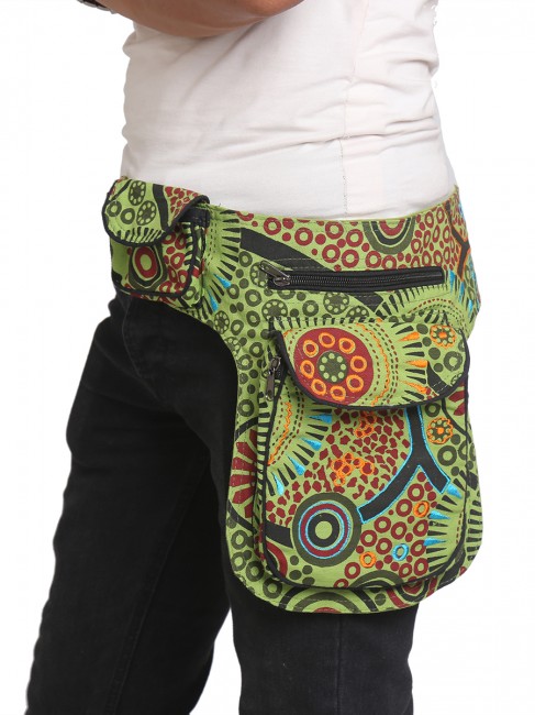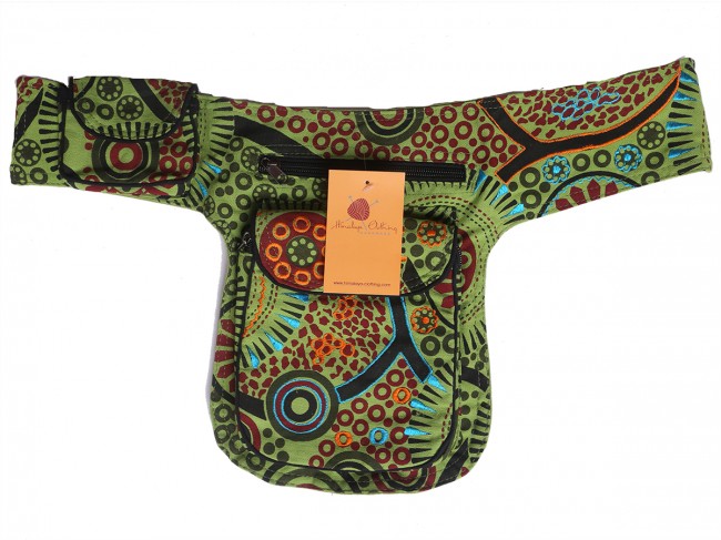 100% pure cotton colorful money belt handmade in Nepal. This product can be use by both man and women. This bag has charming features, it has beautiful print and flower embroideries,it is practical and versatile because it can be belt bag/fanny pack /shoulder bag, it has 3 pocket with zippers, main pocket has magnetic button, 1 pocket is hidden on the back side, small pocket on the outside also has magnetic button, the belt is adjustable which can make shorter and longer as well. It is fair trade product.