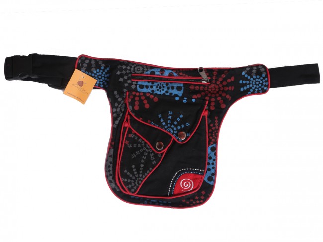 100% pure cotton colorful money belt handmade in Nepal. This product can be use by both man and women. This bag has charming features, it has beautiful print and flower embroideries,it is practical and versatile because it can be belt bag/fanny pack /shoulder bag, it has 3 pocket with zippers, main pocket has magnetic button, 1 pocket is hidden on the back side, small pocket on the outside also has magnetic button, the belt is adjustable which can make shorter and longer as well. It is fair trade product.