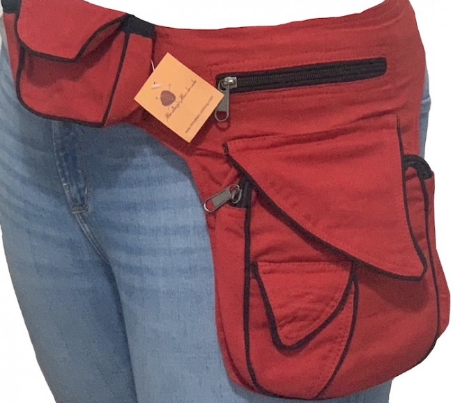 100% pure cotton patch money belt handmade in Nepal. This product can be use by both man and women. This bag has charming features, it is practical and versatile because it can be belt bag/fanny pack /shoulder bag, it has 3 pocket with zippers, main pocket has magnetic button, 1 pocket is hidden on the back side, small pocket on the outside also has magnetic button, the belt is adjustable which can make shorter and longer as well. It is fair trade product.