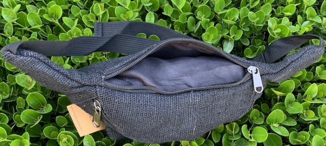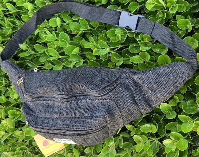 100% pure Himalaya Hemp Black Color money belt handmade in Nepal. This product can be use by both men and women west or can be worn lower on the hips. This bag has charming features, it is practical and versatile because it can be belt bag/fanny pack /shoulder bag, it has 3 pockets with zippers, the belt is adjustable 32 - 45 inch which can make shorter and longer as well. It is fair trade product. Size: 32x14x10 cm (12.5x5.5x4 inches)