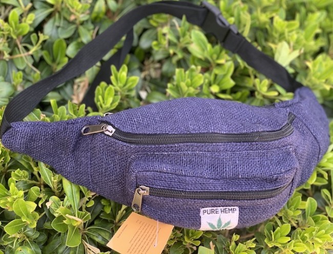 100% pure Himalaya Hemp Blue Color money belt handmade in Nepal. This product can be use by both men and women west or can be worn lower on the hips. This bag has charming features, it is practical and versatile because it can be belt bag/fanny pack /shoulder bag, it has 3 pockets with zippers, the belt is adjustable 32 - 45 inch which can make shorter and longer as well. It is fair trade product. Size: 32x14x10 cm (12.5x5.5x4 inches)
