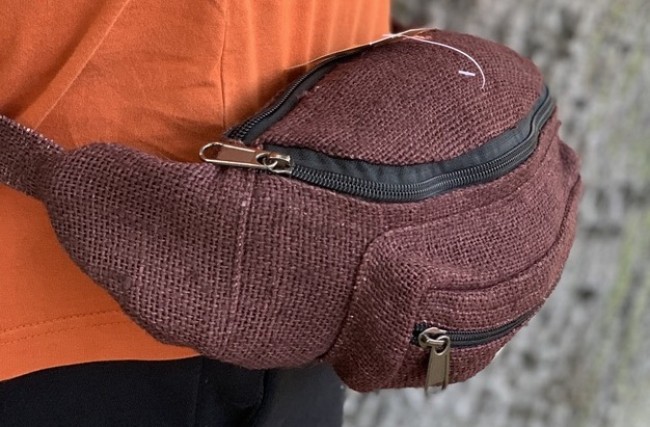 100% pure Core Hemp Brown Color money belt handmade in Nepal. This product can be use by both men and women west or can be worn lower on the hips. This bag has charming features, it is practical and versatile because it can be belt bag/fanny pack /shoulder bag, it has 3 pockets with zippers, the belt is adjustable 32 - 45 inch which can make shorter and longer as well. It is fair trade product.