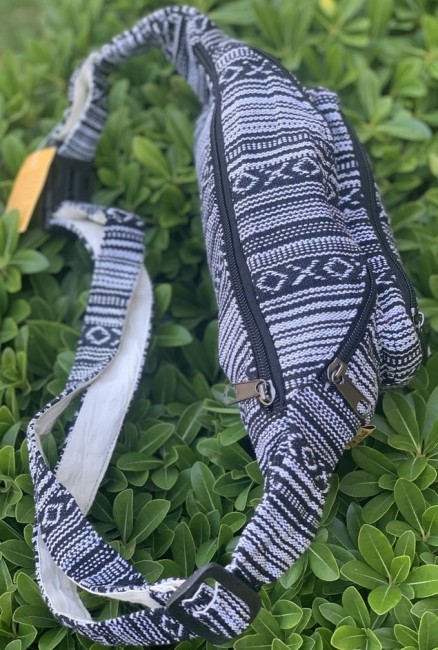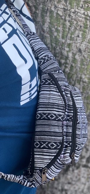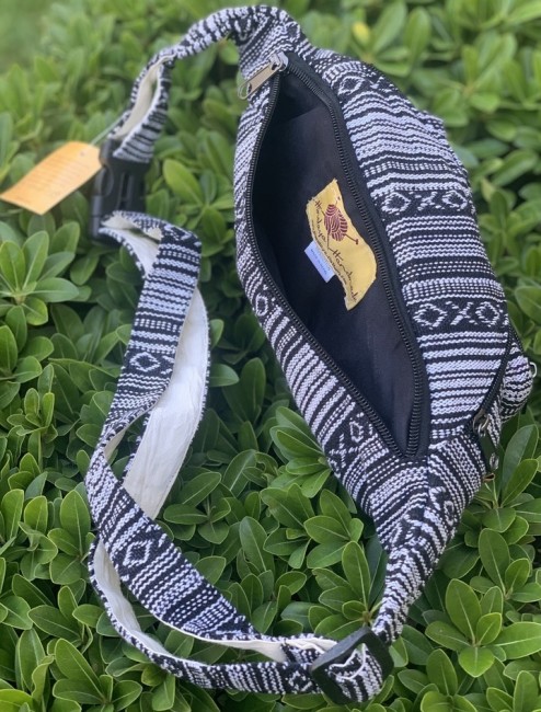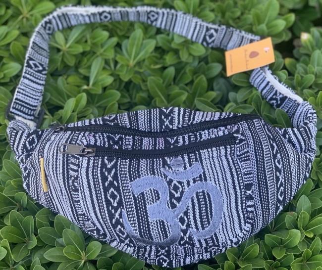 100% pure Hand woven Gheri Cotton Multi Black Color Om Hand Embroidary money belt (Fanny Pack) handmade in Nepal. This product can be use by both men and women west or can be worn lower on the hips. This bag has charming features, it is practical and versatile because it can be belt bag/fanny pack /shoulder bag, it has 3 pockets with zippers, the belt is adjustable 32 - 45 inch which can make shorter and longer as well. It is fair trade product. Size: 29 x14x10 cm (12.5x5.5x4 inches)