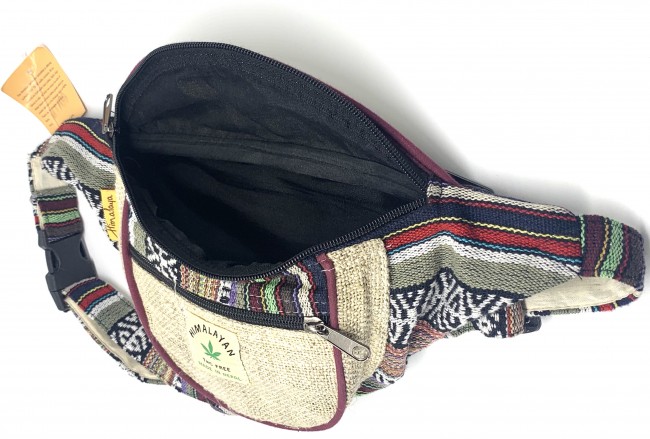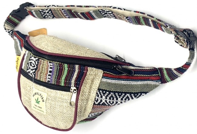 100% Pure Himalaya Hemp money belt Bag handmade in Nepal. This product can be use by both men and women west or can be worn lower on the hips. This bag has charming features, it is practical and versatile because it can be belt bag/fanny pack /shoulder bag, it has 3 pockets with zippers, the belt is adjustable 32 - 45 inch which can make shorter and longer as well. It is fair trade product.