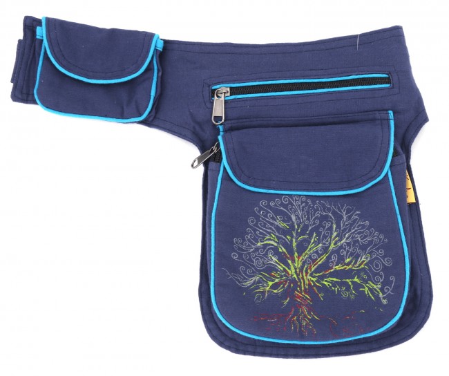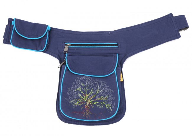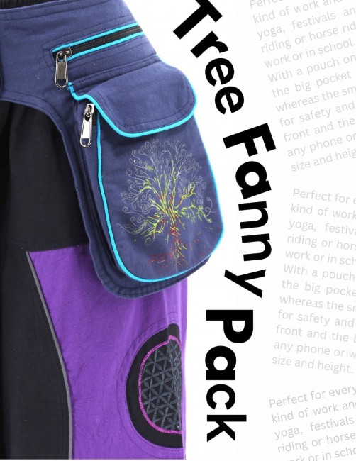 100% pure cotton Tree of Life designed Fanny Pack is handmade in Nepal. This product can be used by women or men and is usually worn lower on the hips. This bag has charming features, it has a beautiful print of the Tree of life, it is practical and versatile because it can be used as a belt bag, fanny pack as well as a shoulder bag, it has 3 pockets in the front with zippers and additionally all three pockets come equipped with a zipper, A pocket is hidden on the back side, the belt is adjustable from 29 - 40 inches which can be made shorter and longer to tend to your needs, and the belt also includes a small compartment which is big enough to fit coins and money. This is a Fair-Trade product.
