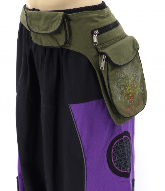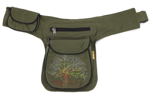 100% pure cotton Tree of Life designed Fanny Pack is handmade in Nepal. This product can be used by women or men and is usually worn lower on the hips. This bag has charming features, it has a beautiful print of the Tree of life, it is practical and versatile because it can be used as a belt bag, fanny pack as well as a shoulder bag, it has 3 pockets in the front with zippers and additionally all three pockets come equipped with a zipper, A pocket is hidden on the back side, the belt is adjustable from 29 - 40 inches which can be made shorter and longer to tend to your needs, and the belt also includes a small compartment which is big enough to fit coins and money. This is a Fair-Trade product.