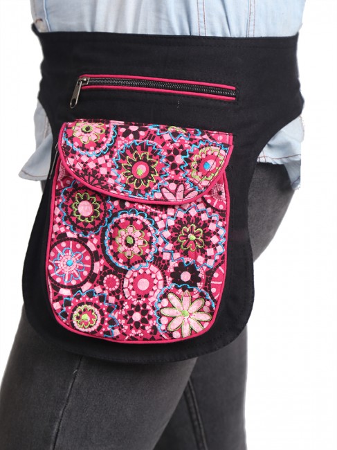 100% pure cotton colorful money belt handmade in Nepal. This product can be use by both man and women. This bag has charming features, it has beautiful print and flower embroideries,it is practical and versatile because it can be belt bag/fanny pack /shoulder bag, it has 3 pocket with zippers, main pocket has magnetic button, 1 pocket is hidden on the back side, small pocket on the outside also has magnetic button, the belt is adjustable which can make shorter and longer as well. It is fair trade product.