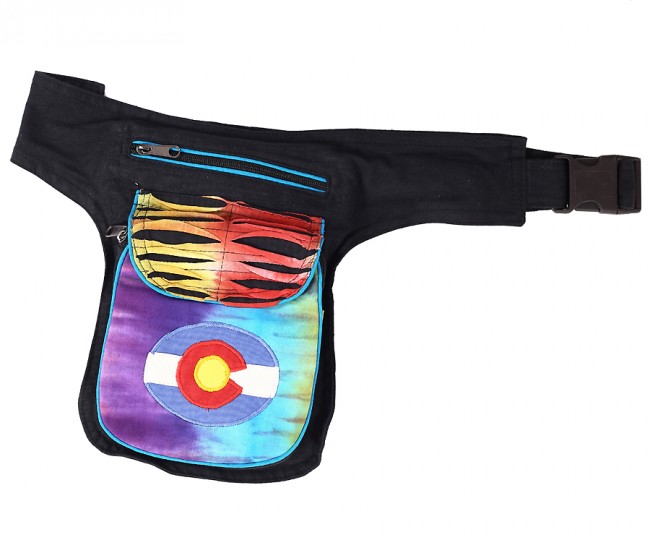 100% pure cotton colorful razor cut design money belt handmade in Nepal. This product can be use by both man and women. This bag has charming features, it has beautiful Colorado flag embroideries,it is practical and versatile because it can be belt bag/fanny pack /shoulder bag, it has 3 pocket with zippers, main pocket has magnetic button, 1 pocket is hidden on the back side, small pocket on the outside also has magnetic button, the belt is adjustable which can make shorter and longer as well. It is fair trade product.
