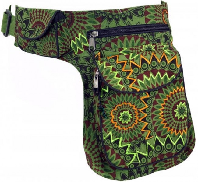 100% pure cotton colorful money belt handmade in Nepal. This product can be use by both man and women. This bag has charming features, it has beautiful print and flower embroideries,it is practical and versatile because it can be belt bag/fanny pack /shoulder bag, it has 3 pocket with zippers, main pocket has magnetic button, 1 pocket is hidden on the back side, small pocket on the outside also has magnetic button, the belt is adjustable which can make shorter and longer as well. It is fair trade product.