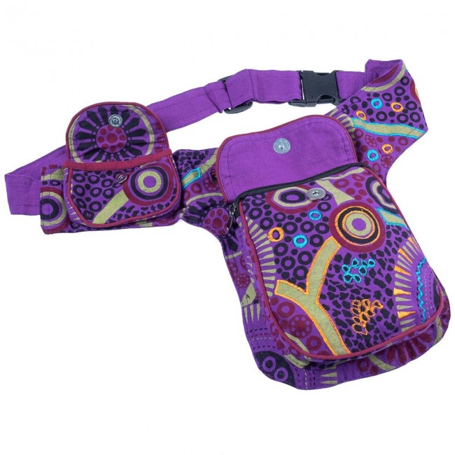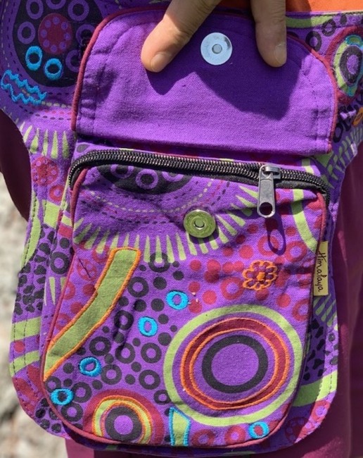 100% pure cotton colorful money belt handmade in Nepal. This product can be use by both man and women. This bag has charming features, it has beautiful print and flower embroideries,it is practical and versatile because it can be belt bag/fanny pack /shoulder bag, it has 3 pocket with zippers, main pocket has magnetic button, 1 pocket is hidden on the back side, small pocket on the outside also has magnetic button, the belt is adjustable which can make shorter and longer as well. It is fair trade product.
