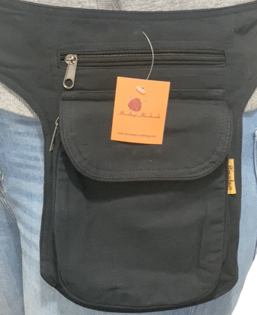 100% pure cotton plain money belt handmade in Nepal. This product can be use by both man and women. This bag has charming features, it is practical and versatile because it can be belt bag/fanny pack /shoulder bag, it has 3 pocket with zippers, main pocket has magnetic button, 1 pocket is hidden on the back side, small pocket on the outside also has magnetic button, the belt is adjustable which can make shorter and longer as well. It is fair trade product.