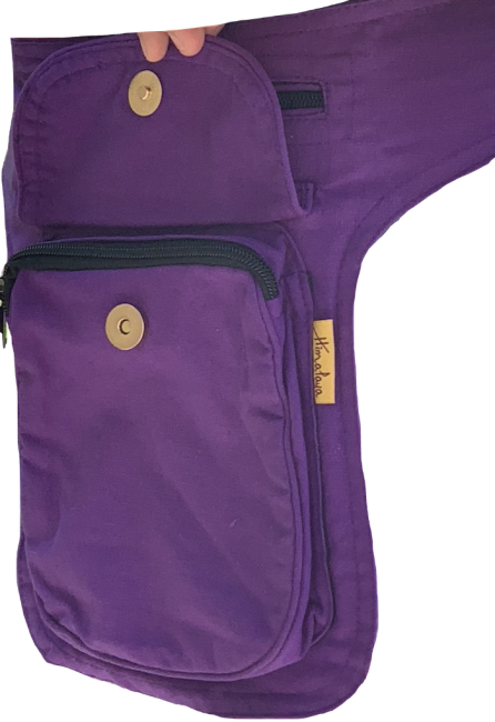 100% pure cotton plain money belt handmade in Nepal. This product can be use by both man and women. This bag has charming features, it is practical and versatile because it can be belt bag/fanny pack /shoulder bag, it has 3 pocket with zippers, main pocket has magnetic button, 1 pocket is hidden on the back side, small pocket on the outside also has magnetic button, the belt is adjustable which can make shorter and longer as well. It is fair trade product.