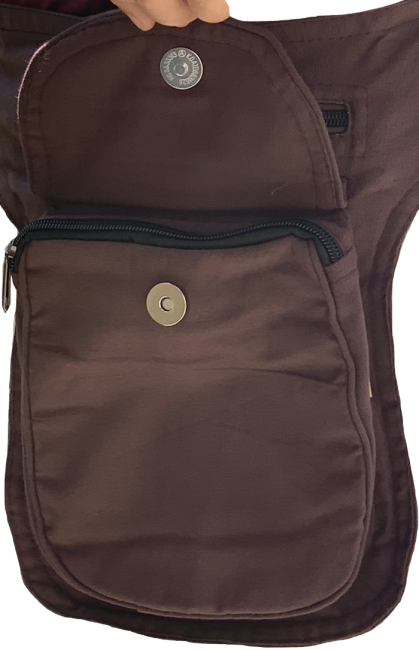 100% pure cotton plain money belt handmade in Nepal. This product can be use by both man and women. This bag has charming features, it is practical and versatile because it can be belt bag/fanny pack /shoulder bag, it has 3 pocket with zippers, main pocket has magnetic button, 1 pocket is hidden on the back side, small pocket on the outside also has magnetic button, the belt is adjustable which can make shorter and longer as well. It is fair trade product.