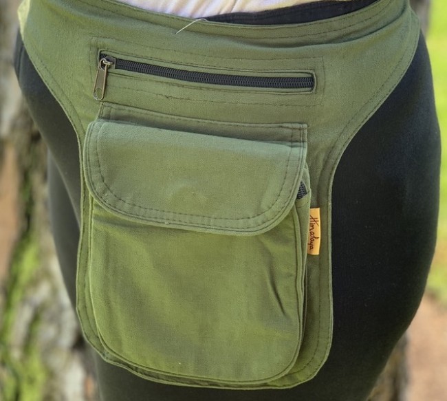 100% pure cotton plain money belt handmade in Nepal. This product can be use by both man and women. This bag has charming features, it is practical and versatile because it can be belt bag/fanny pack /shoulder bag, it has 3 pocket with zippers, main pocket has magnetic button, 1 pocket is hidden on the back side, small pocket on the outside also has magnetic button, the belt is adjustable which can make shorter and longer as well. It is fair trade product.