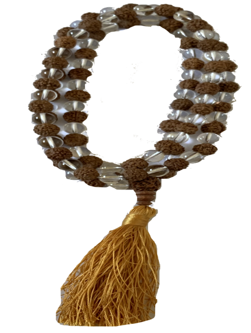 This 8mm Rudrakchaya with crystal 108 prayer Mala is handmade as with all handcrafted and hand knotted work. It creates variations in color, size and design. It is darker in color that is used a prayer rosary and for meditation. It can be worn on neck as necklace or on hands as bracelet. If you practice meditation and yoga a Mala can be a powerful tool in your quest for wellness and clear understanding.