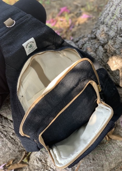 This Core Hemp sling bag crossbody backpack is the perfect replacement for a traditional fanny pack. With the Adjustable strap, this sling bag fits all body types and can be worn over the shoulder across the chest or back. This sling bag features 3 front zipper compartments, 1 inner zipper compartment & inner padding for added safety. The Core Hemp material makes this sling bag very durable with an added urban/sporty appeal.