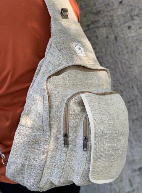 This Core Hemp sling bag crossbody backpack is the perfect replacement for a traditional fanny pack. With the Adjustable strap, this sling bag fits all body types and can be worn over the shoulder across the chest or back. This sling bag features 3 front zipper compartments, 1 inner zipper compartment & inner padding for added safety. The Core Hemp material makes this sling bag very durable with an added urban/sporty appeal.