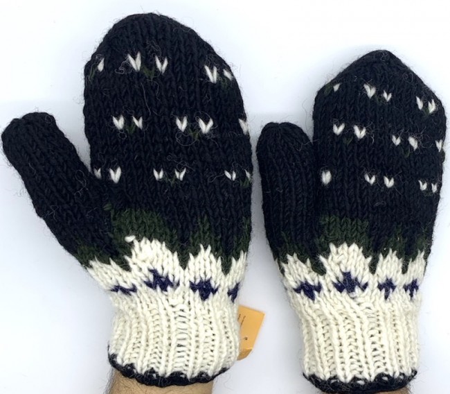 . Double Hand knitted with the highest quality 100% Wool with Fleece Lining, it is very comfortable and its one size fits for. Finger holes are not lined. Dimensions: 9”-Inch-Long x 5”-inch-Wide / 22.86 CM Long x 12.7 CM Wide
