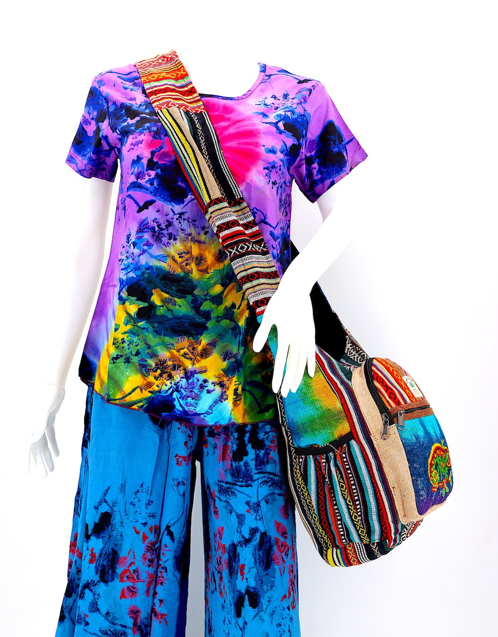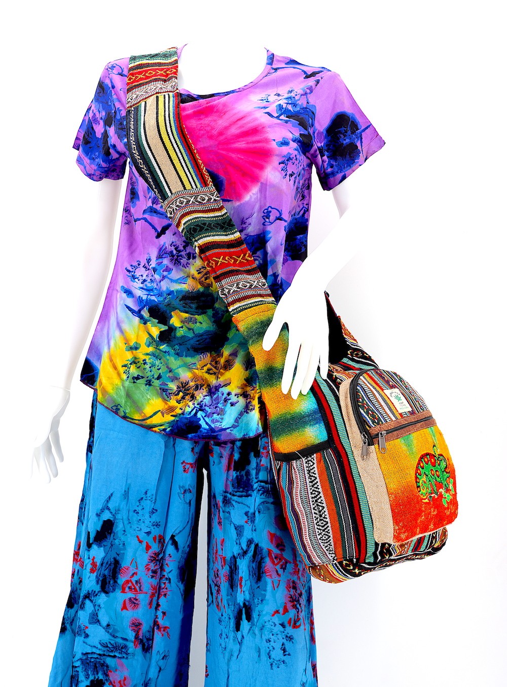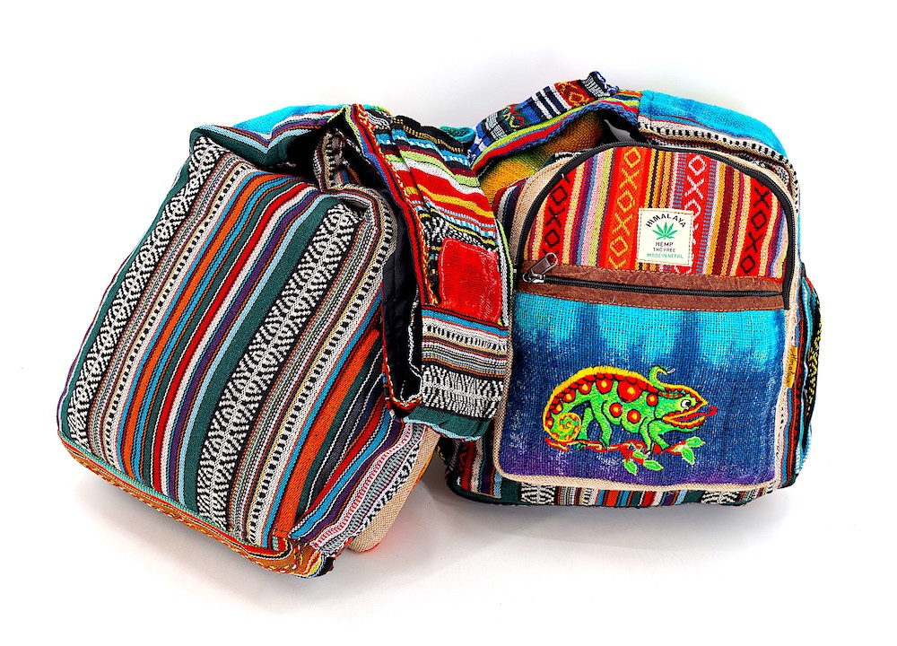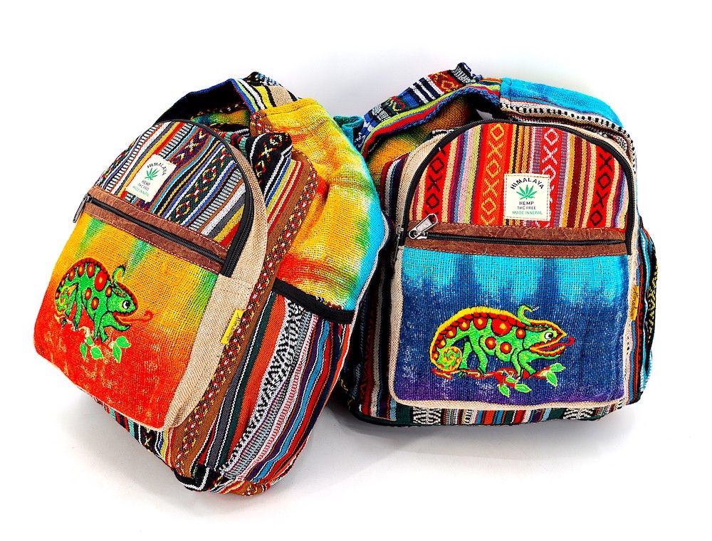 A versatile and beautiful Chameleon embroidered colorful 100% Natural Handwoven Hemp Shoulder Bag stitched by talented artisans in Himalaya range of Nepal. Purchasing means supporting underprivileged Nepalese communities who help make these bags.