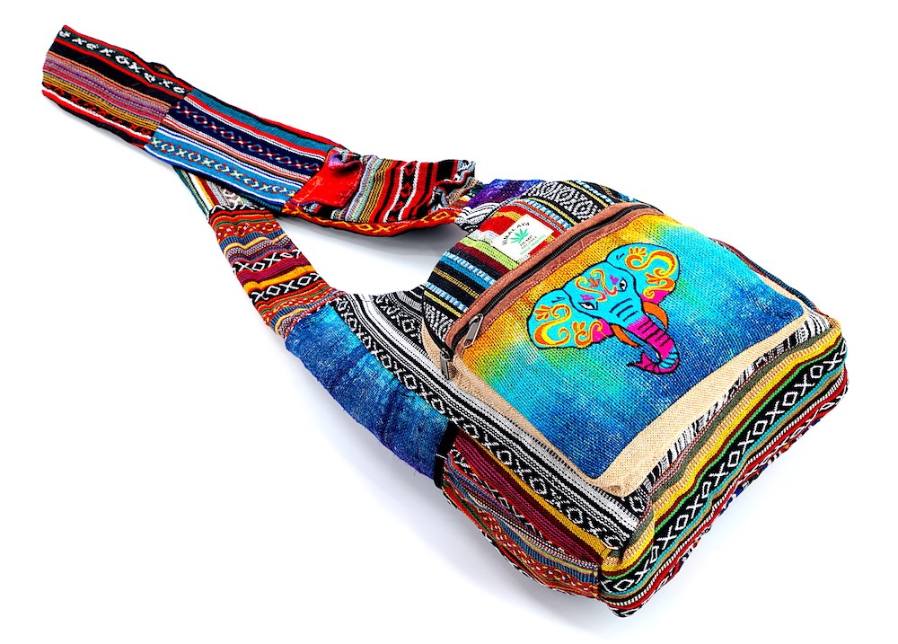 A versatile and beautiful Elephant Hand Embroidered Hemp Crossbody Bag made with 100 percent natural THC-free Himalaya hemp. Stitched and assembled by the most talented artisans in Nepal.