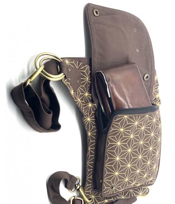 An adjustable hip bag, can be worn around the waist/hip or extend the strap to make it a shoulder bag! Each end of the straps has a large clip, so they can be attached in many different ways depending on your needs. Wearing a skirt? The brass hoops on the front can be used as decoration, or clipping on keychains and charms. The fanny pack also has a thigh strap which contains a clip which can be used as an extra layer of protection that can be worn around your thigh.