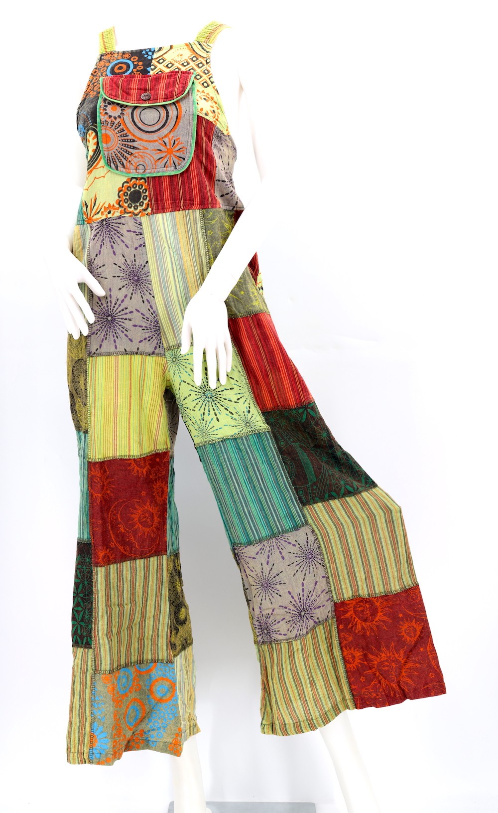 These Unique Hippie Wide Leg Gheri Block Print Multicolor Overlock Patchwork Overalls are crafted from the finest 100% Natural Handwoven Cotton by some of the most skilled artisans. Elevate your style instantly with these extraordinary and highly fashionable Multicolor Patchwork Block Print Overalls that are suitable for almost any occasion, ensuring you look your best every single time.