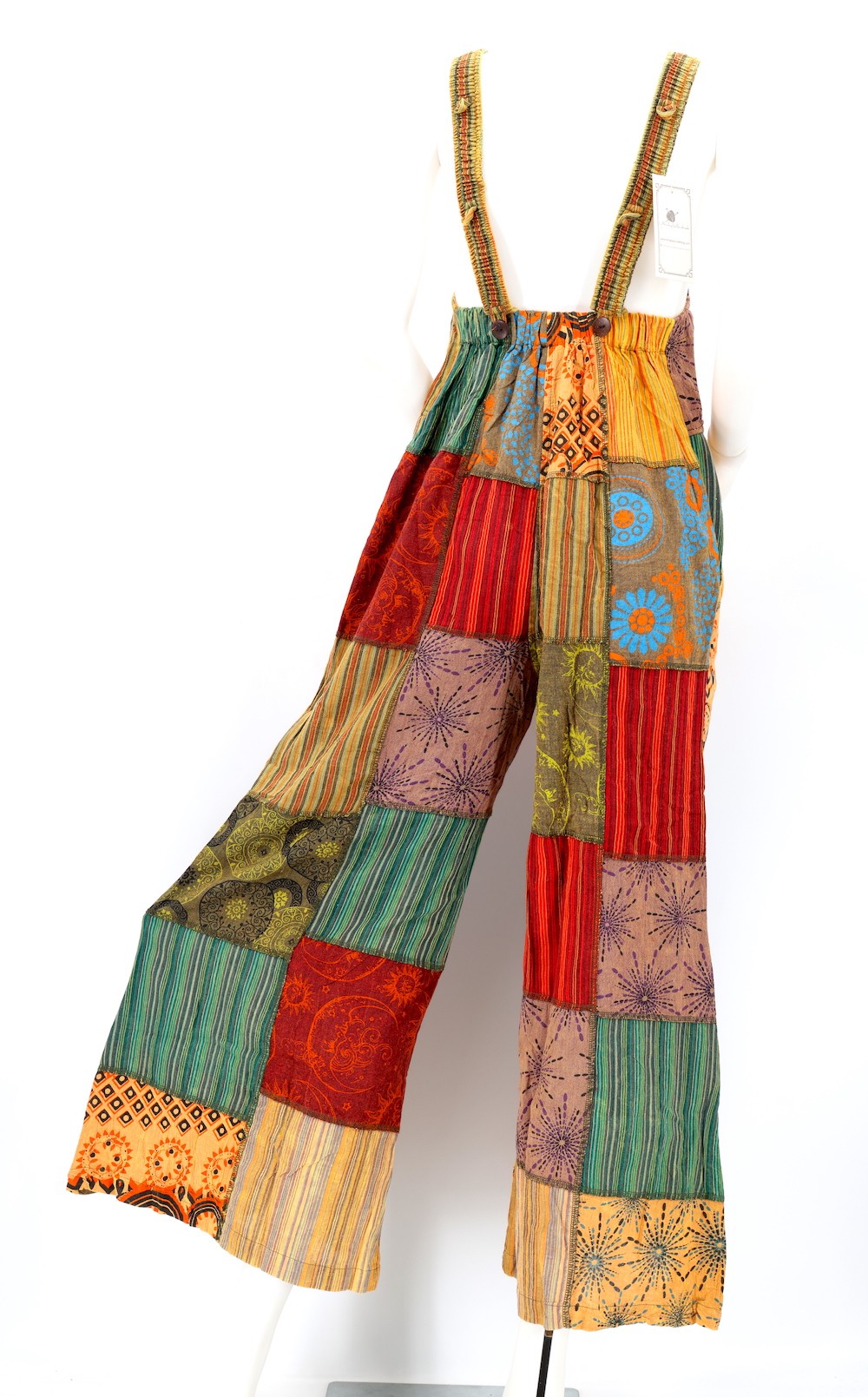 These Unique Hippie Wide Leg Gheri Block Print Multicolor Overlock Patchwork Overalls are crafted from the finest 100% Natural Handwoven Cotton by some of the most skilled artisans. Elevate your style instantly with these extraordinary and highly fashionable Multicolor Patchwork Block Print Overalls that are suitable for almost any occasion, ensuring you look your best every single time.